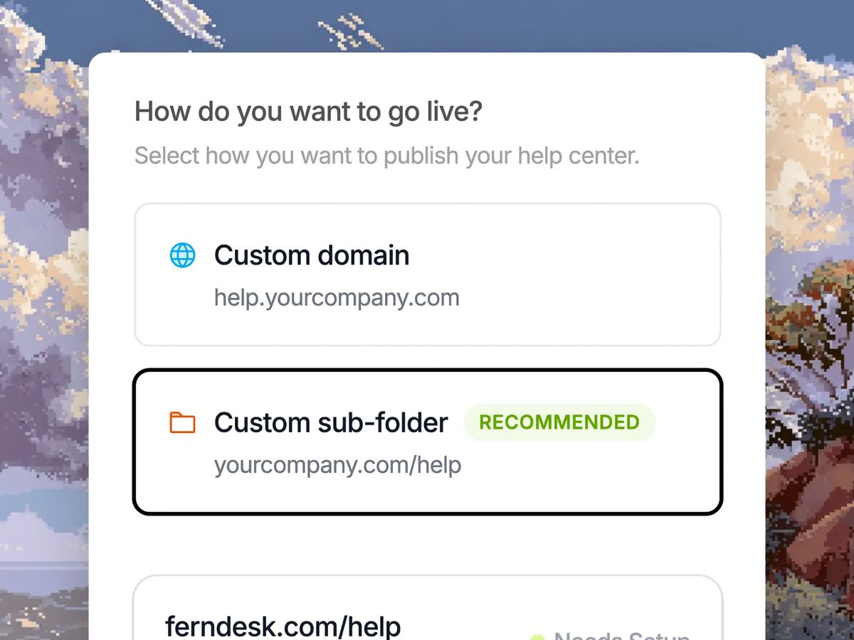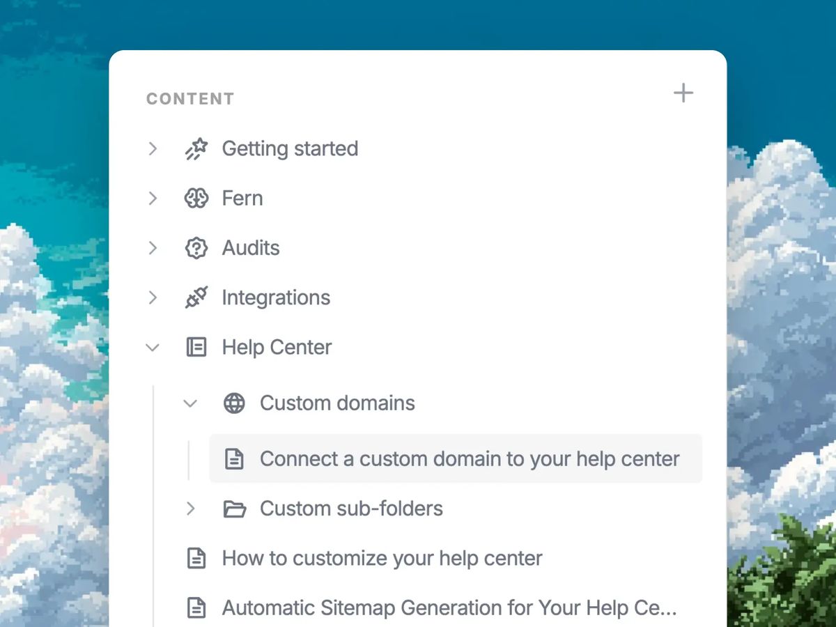 Ferndesk provides a beautiful, AI-native help center that delights users and automatically creates and updates content, so you can focus on your product.