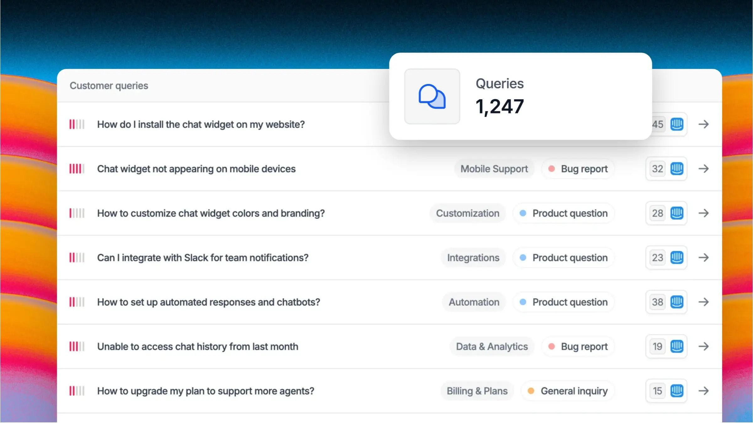 Support trends allow you to see the questions that your customers are asking in your support inbox or community, as well as how often they're asked, and then use that to make strategic updates to your knowledge base.