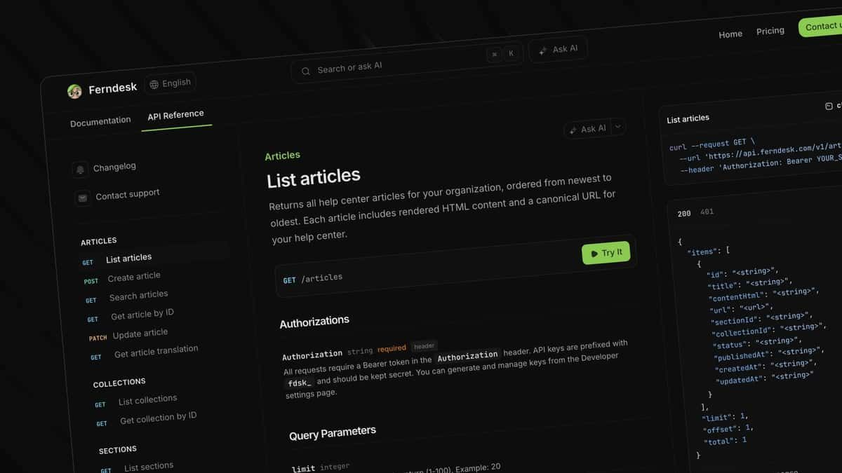 We also launched the Ferndesk REST API, so you can manage your help center programmatically.