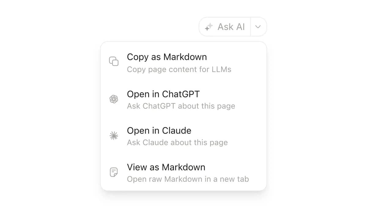 โก Content actions - readers can copy as markdown, open in ChatGPT/Claude, or ask your AI assistant